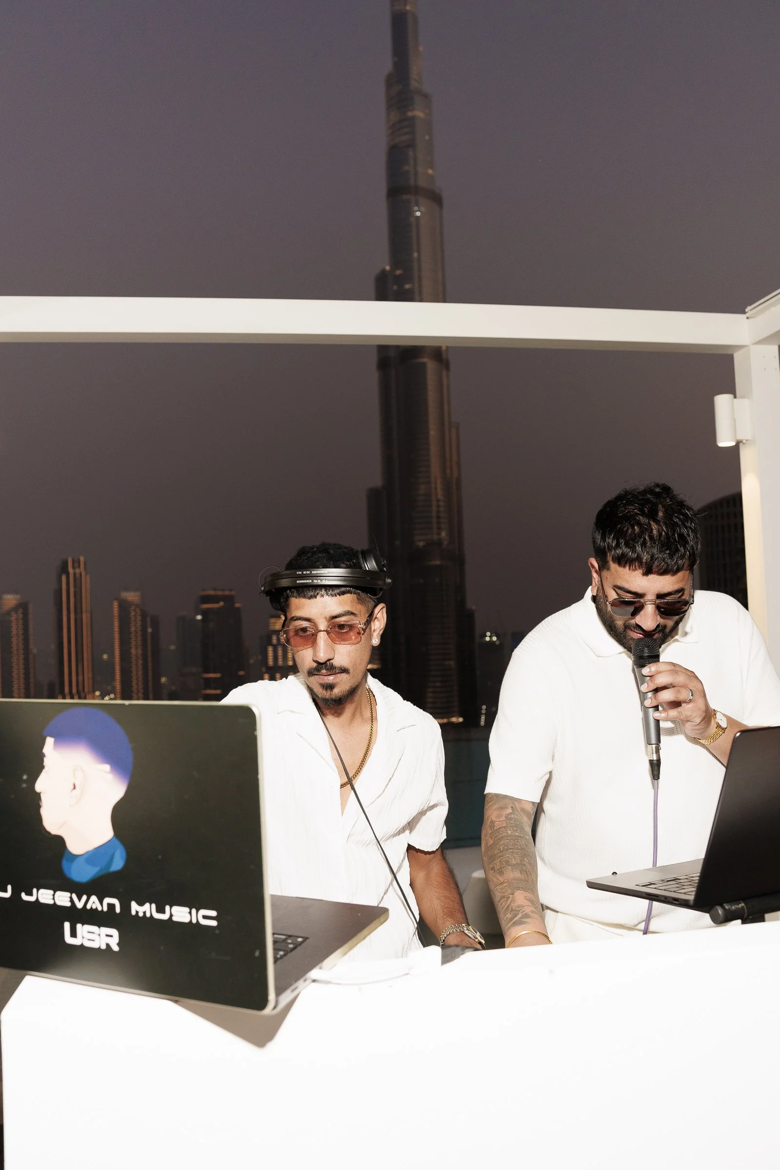 an all white welcome party at the address sky view. panoramic views of the worlds tallest building,